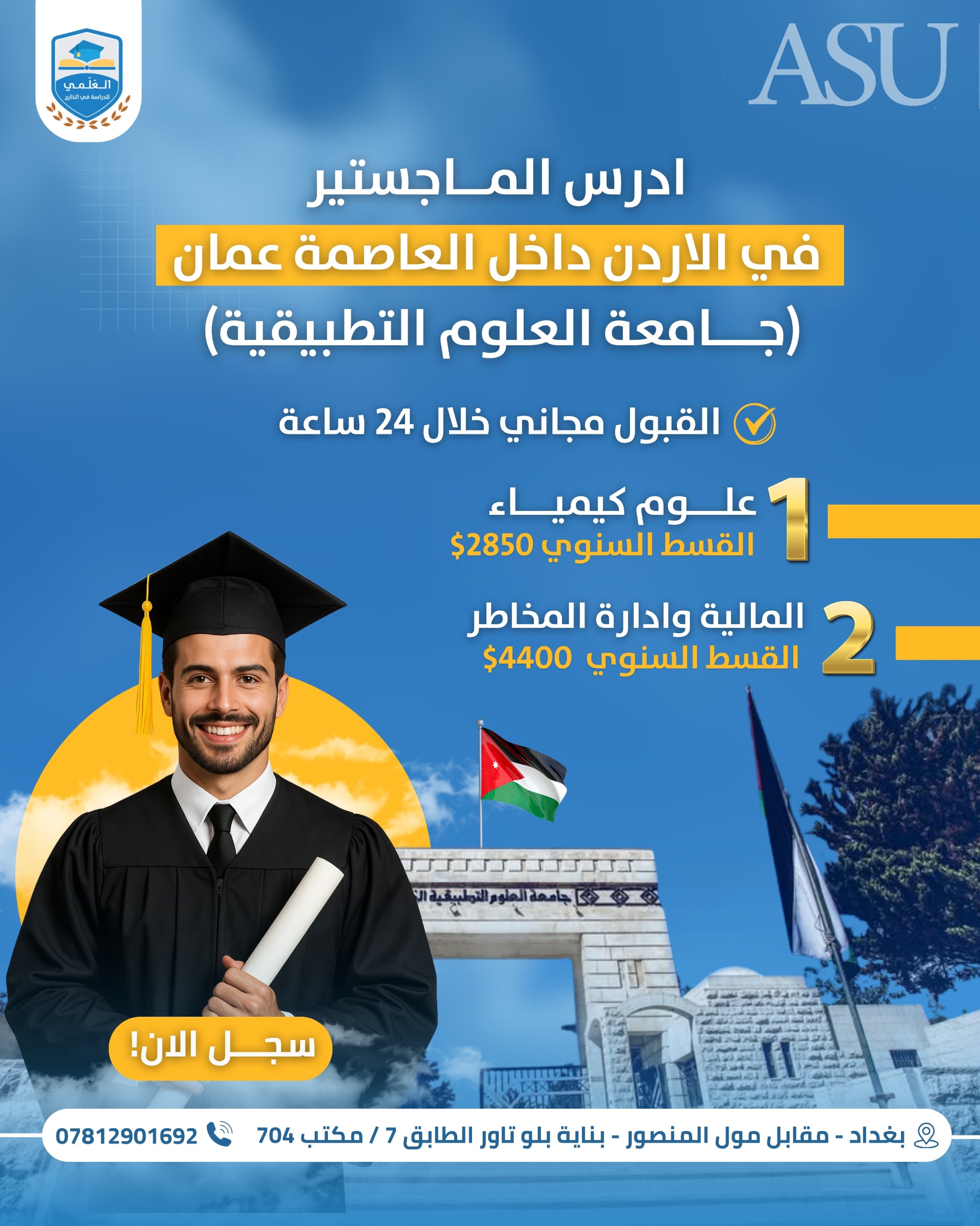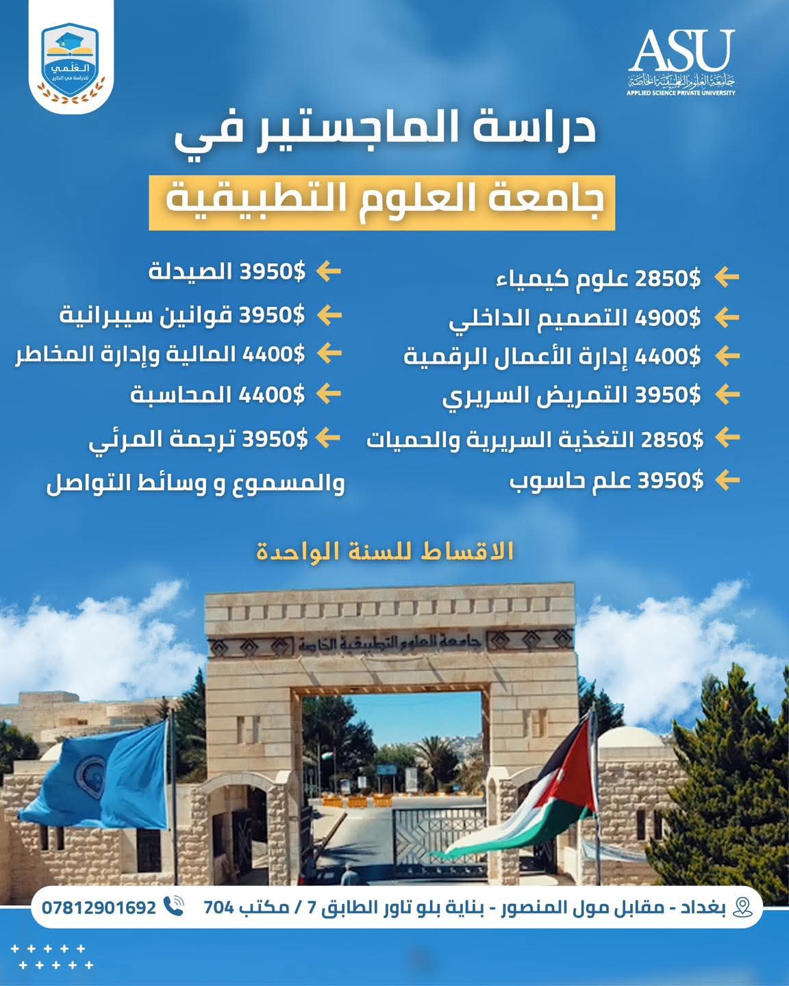 دراسة الماجستير الاردن ( جامعة عمان الاهلية - جامعة الشرق الاوسط - جامعة العلوم التطبيقية )