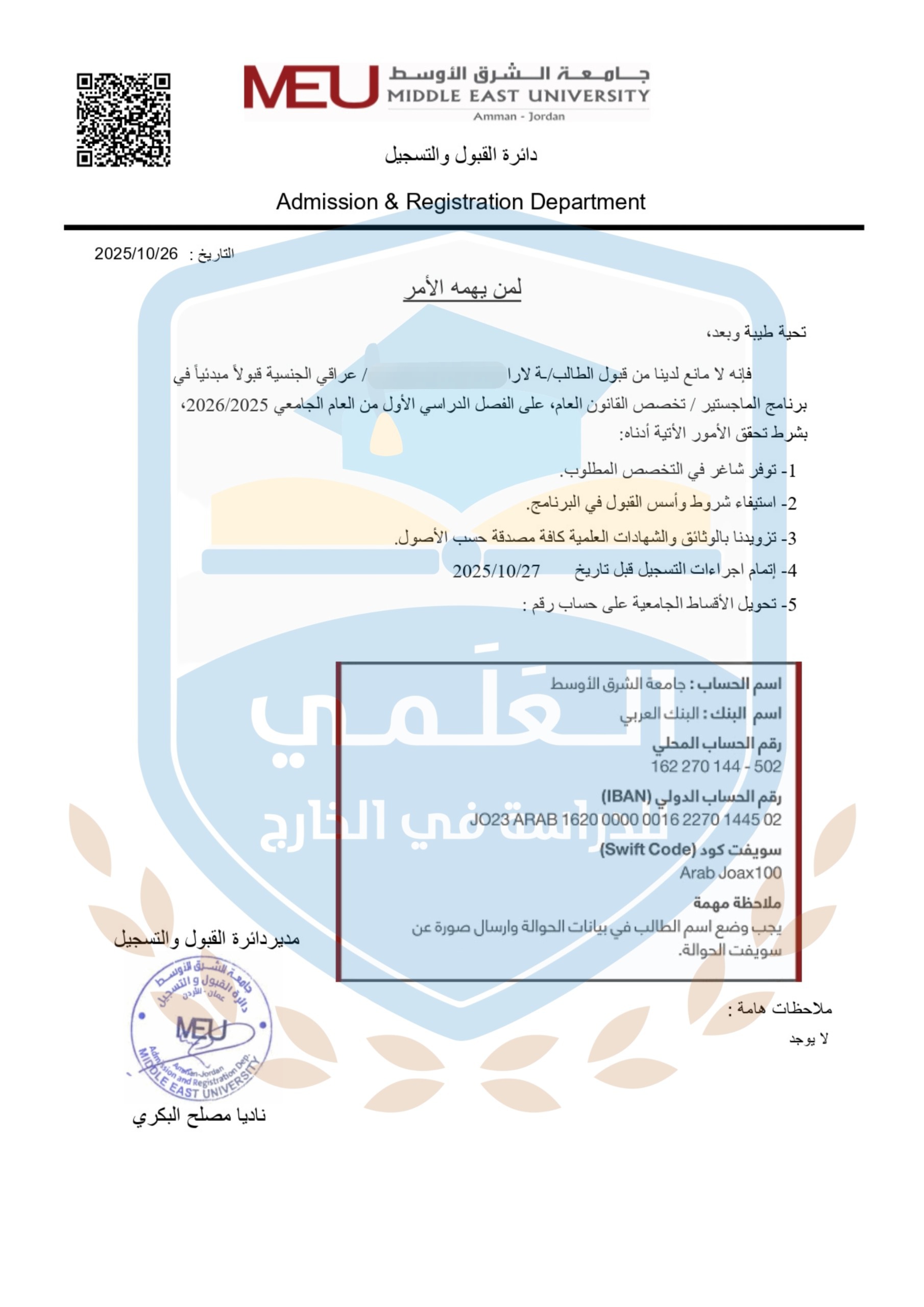 قبول على جامعة الشرق الأوسط