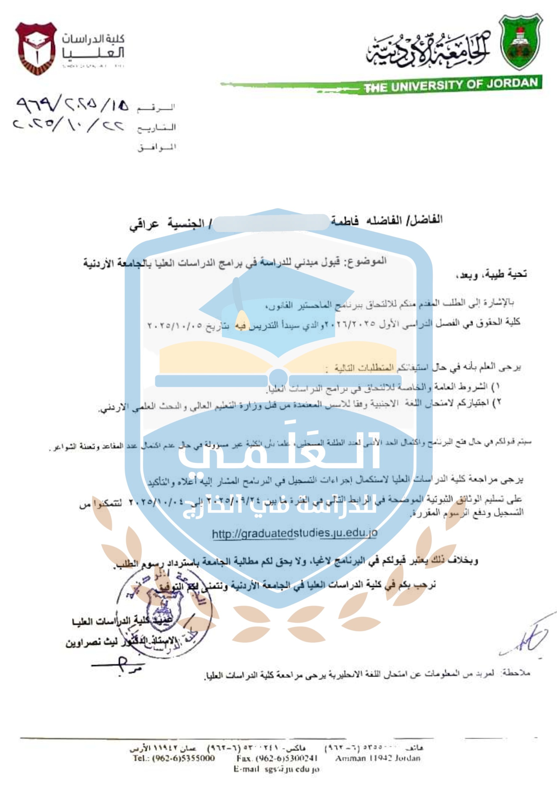قبول الست فاطمة على الجامعة الاردنية