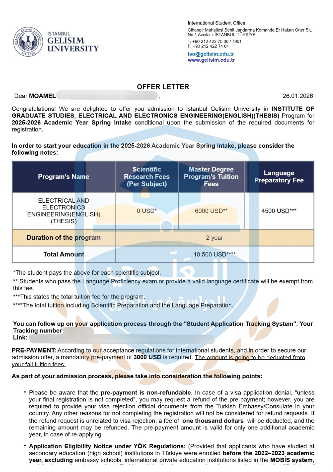 قبول طالبنا مؤمل على جامعة غيلشيم التركية